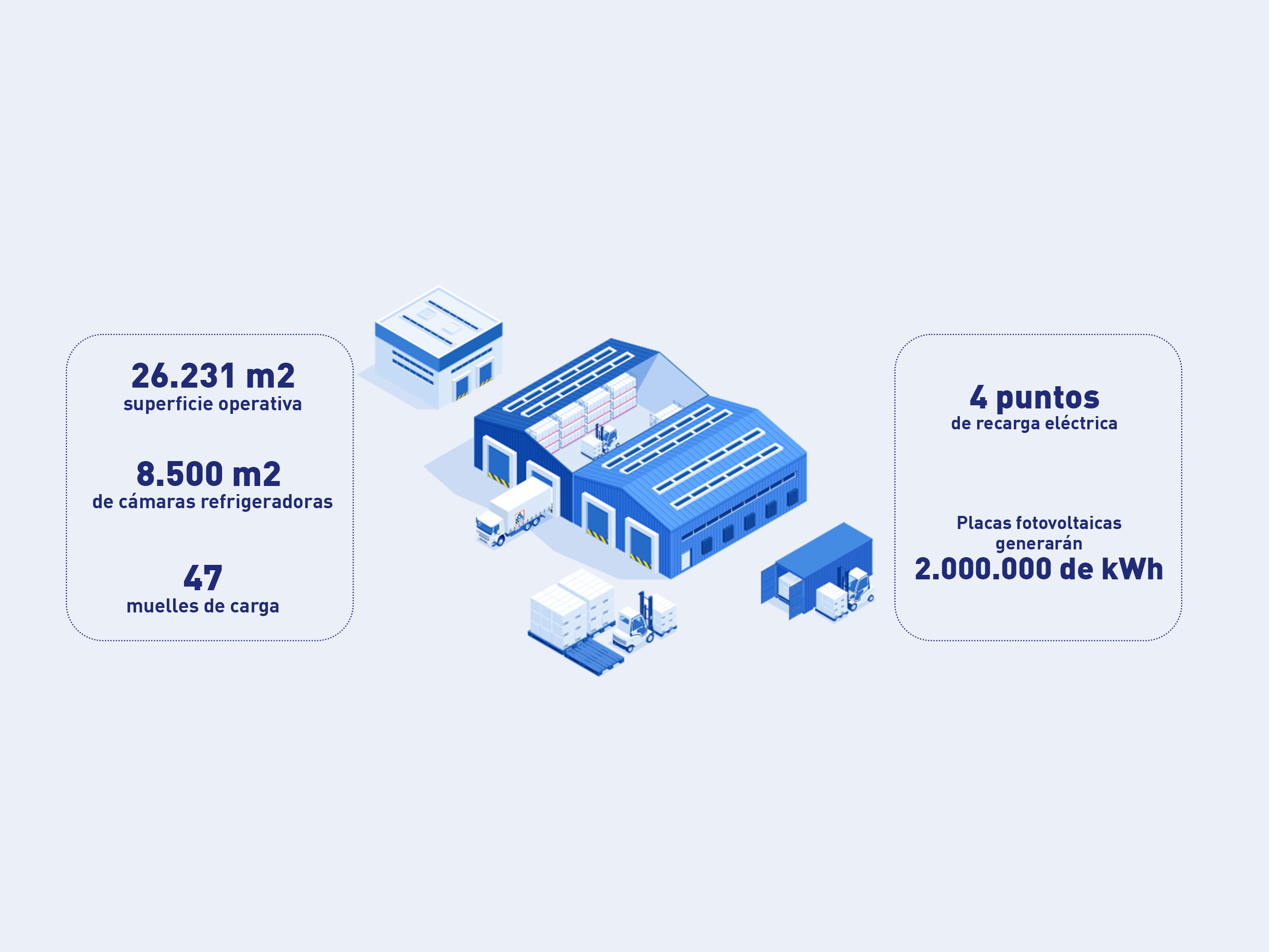 La plataforma se encuentra en una parcela de 42.163 metros cuadrados ubicada en el municipio grancanario de Agüimes. Tendrá una superficie operativa de 26.231 metros cuadrados y contará con 47 muelles de carga y más de 8.500 metros cuadrados de cámaras refrigeradoras.
