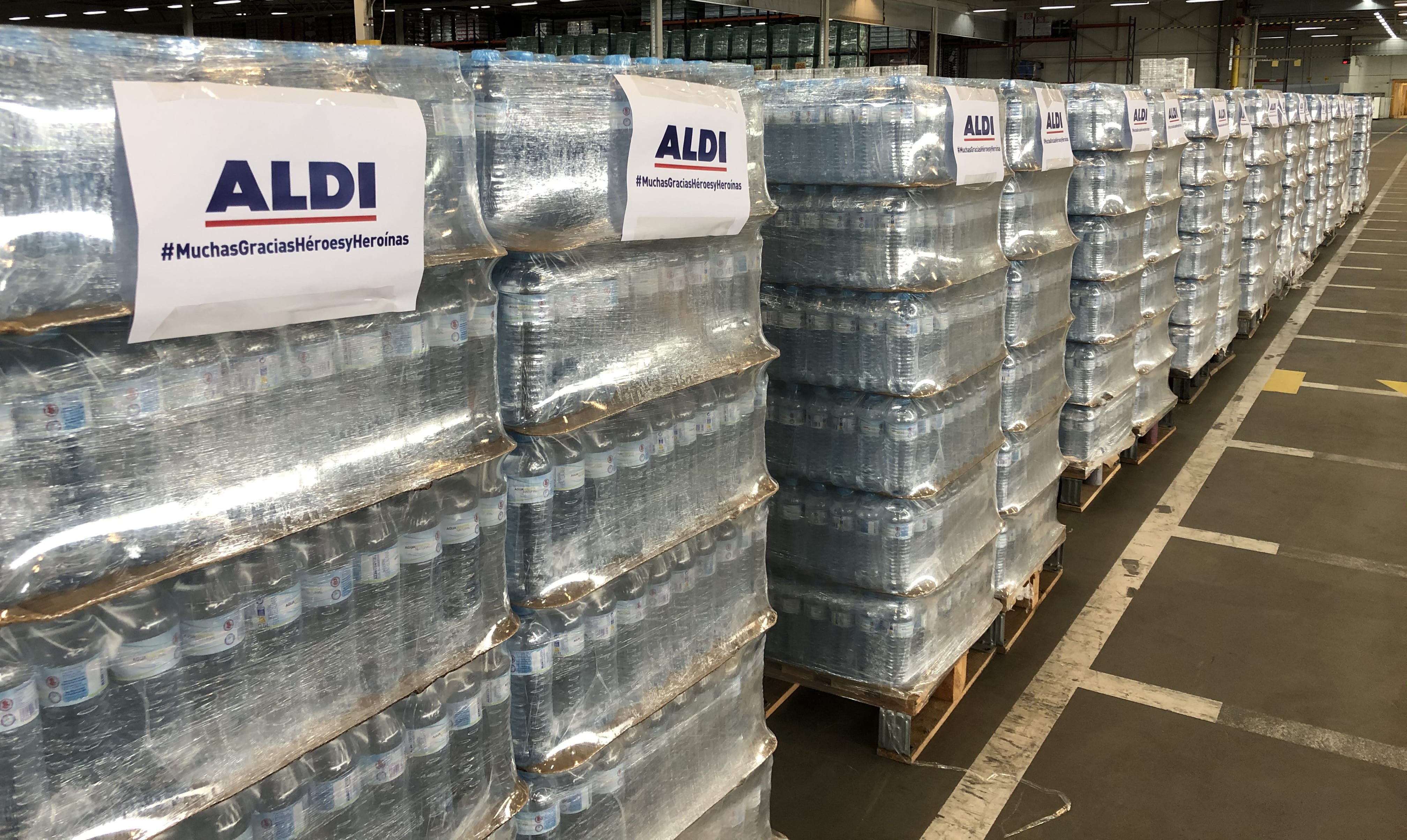 Sant Cugat del Vallès, 30 de marzo de 2020-. ALDI donará 477.200 botellas de agua a centros hospitalarios españoles para cubrir las necesidades extraordinarias de su personal sanitario durante la emergencia sanitaria provocada por el Covid-19. La compañía repartirá 10 camiones repletos de agua con 47.720 botellines cada uno.