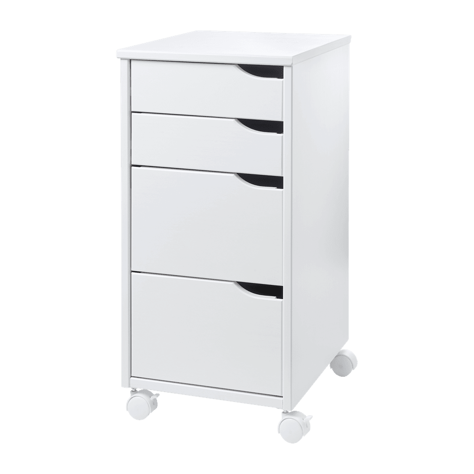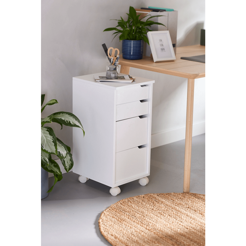 La cajonera de ALDI cuenta con cuatro cajones y cuatro ruedas, dos de ellas con freno, que facilitan su movilidad y aportan estabilidad durante su uso. Fabricada en madera de pino de alta calidad con certificado FSC. Soporta una carga máxima de hasta 14 kg y presenta unas dimensiones de 32 x 66 x 38 cm, lo que la convierte en una solución práctica para almacenar documentos y materiales de uso diario sin ocupar demasiado espacio.