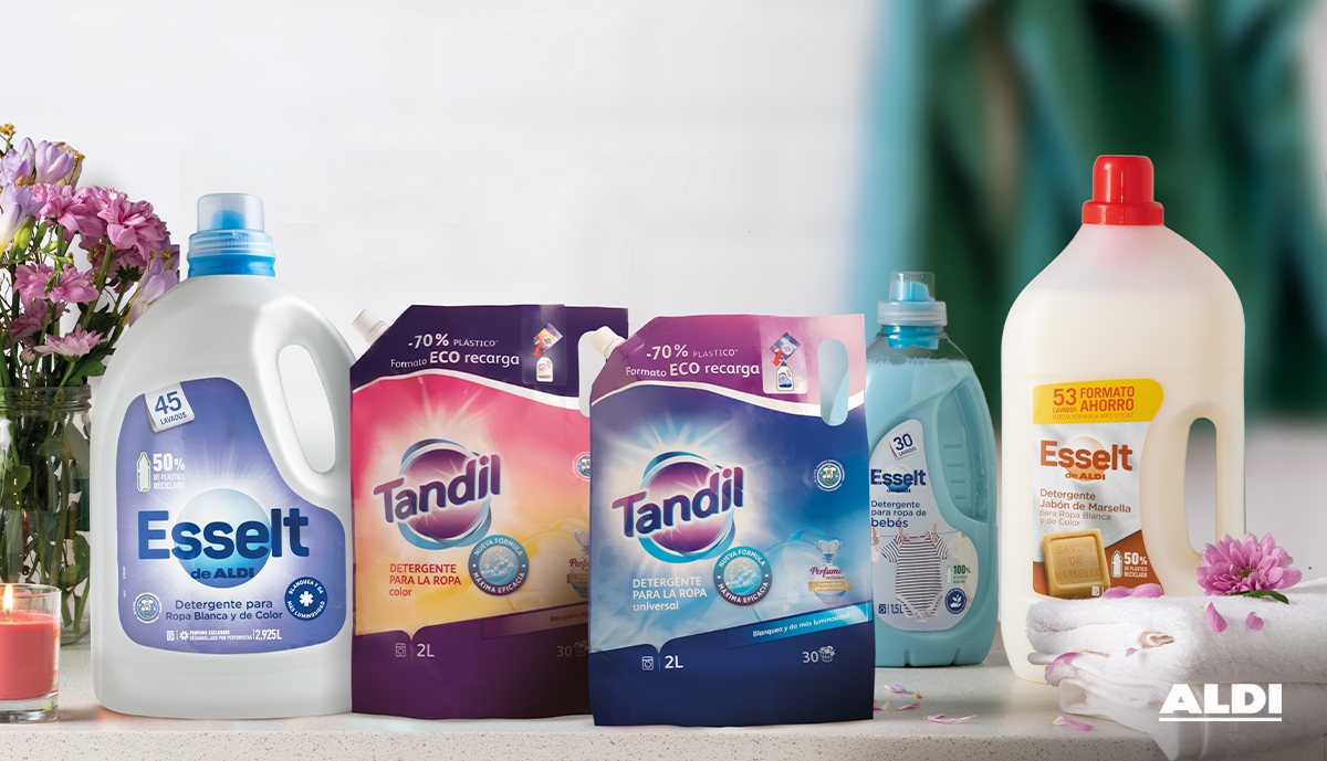 El uso del envase refill de ALDI permite cuidar el planeta y a la vez contribuir al ahorro de sus clientes. Su uso reduce en un 10% el precio por litro respecto a la compra de detergencia convencional.