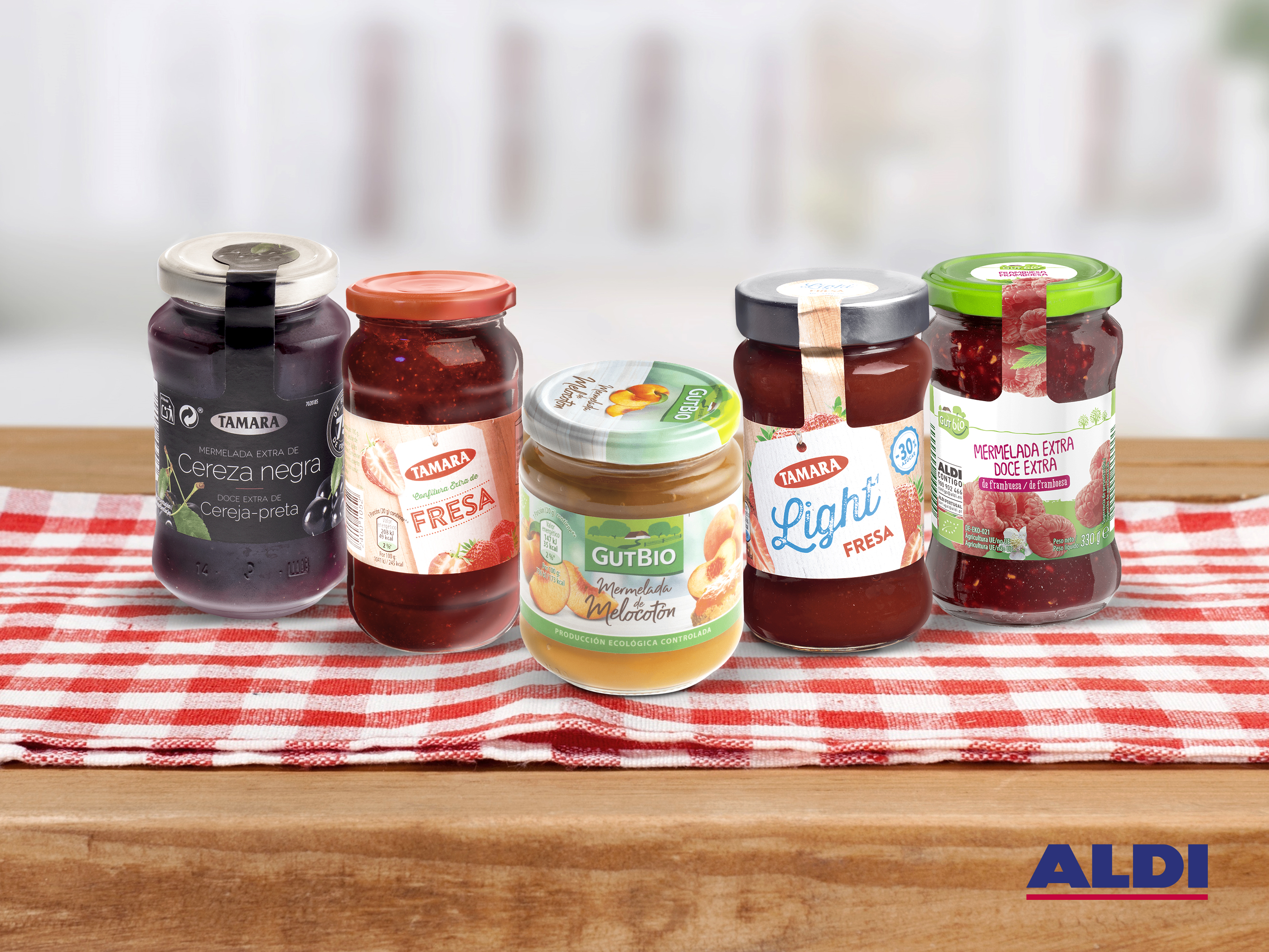 Siguiendo su compromiso por promover un estilo de vida saludable y sostenible, ALDI también ha reducido el azúcar presente en algunas de sus mermeladas. En concreto, las confituras light 70% de fresa y melocotón (1,12€), están elaboradas con un 70% de fruta, un 20% más de lo habitual, haciendo posible que cuenten con un 30% menos de azúcar de lo habitual en las confituras. Estas variantes más naturales, junto con las mermeladas extra con 75% de fruta (1,29€) de fresa, albaricoque o cereza negra, son las más vendidas entre los clientes de ALDI.
