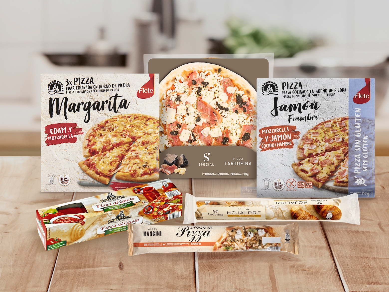La oferta de ALDI en esta categoría destaca por incorporar una amplia variedad de opciones para todo tipo de consumidores. En concreto, la cadena de supermercados cuenta con un surtido de 16 tipos de pizzas congeladas de marca propia desde 1,99 euros, entre las que se incluyen opciones veganas y sin gluten. ALDI ofrece desde sabores clásicos, como la pizza margarita, que se mantiene en el top ventas de su categoría, hasta sabores novedosos como la de grana padano con rúcula. En la sección de pizzas refrigeradas destaca la pizza tartufina de la gama gourmet Special, por 3,99 euros. La compañía también tiene en su surtido un original kit de preparación de pizza con la masa lista para hornear y la cantidad necesaria de salsa de tomate para preparar las pizzas en casa.